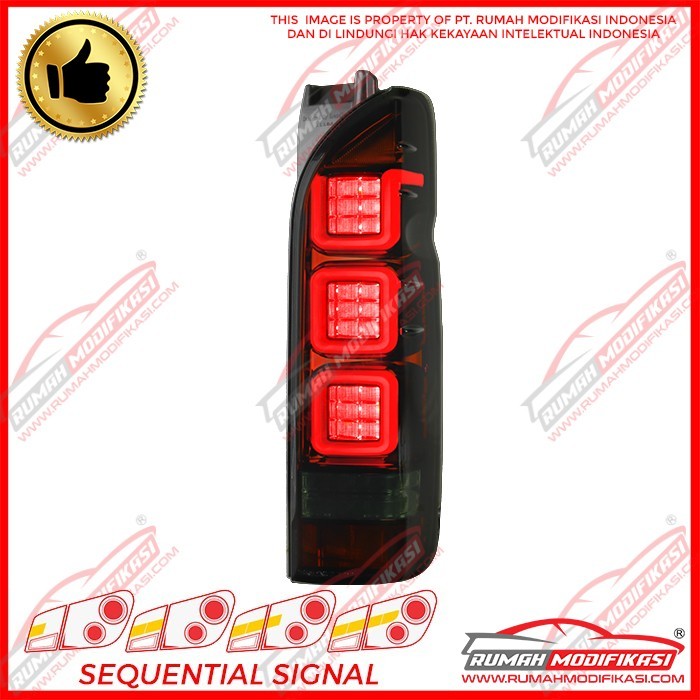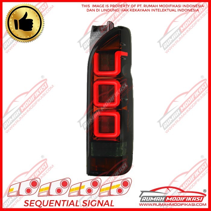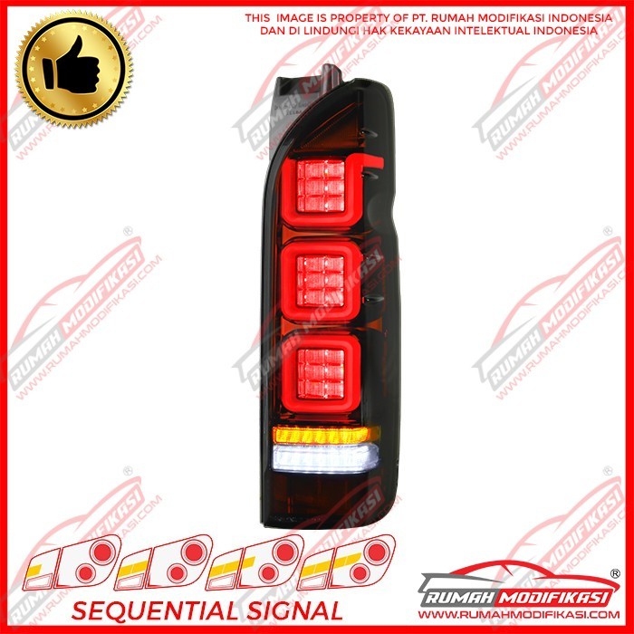 1. Sistem Ganti 2. Warna Red housing, smoke lens 3. Plug n Play 4. Fungsi : Lampu Senja, Lampu Rem, Lampu Mundur, Lampu Sein, 5. Style : Light Bar + Sequential Signal Lamp 6. Merk : Rumah Modifikasi 7. Garansi : 1 Bulan