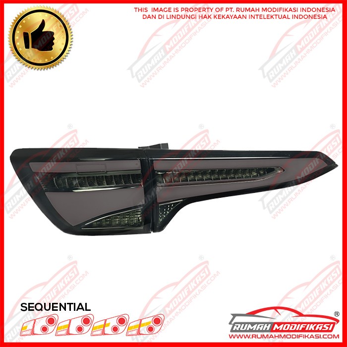 1. Sistem Ganti 2. Warna Smoke 3. Plug n Play 4. Fungsi : Lampu Senja, Lampu Rem, Lampu Mundur, Lampu Sein 5. Style : LED + Light Bar + Sequential + Ceremonial 6. Merk : Rumah Modifikasi 7. Garansi : 1 bulan