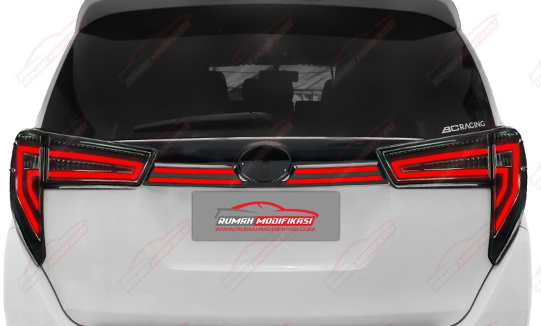 Sepuluh light bar pendek disusun vertikal di sepanjang sisi luar lampu belakang, lalu memanjang di bagian atas, menyambung dengan trunk lid. Sebagai center piece, di tengah trunk lid ditempatkan light bar dengan tulisan Innova. Light bar merah ini menyala sebagai lampu senja, terlihat kontras dengan cover dan rumah lampu warna smoke-nya.
