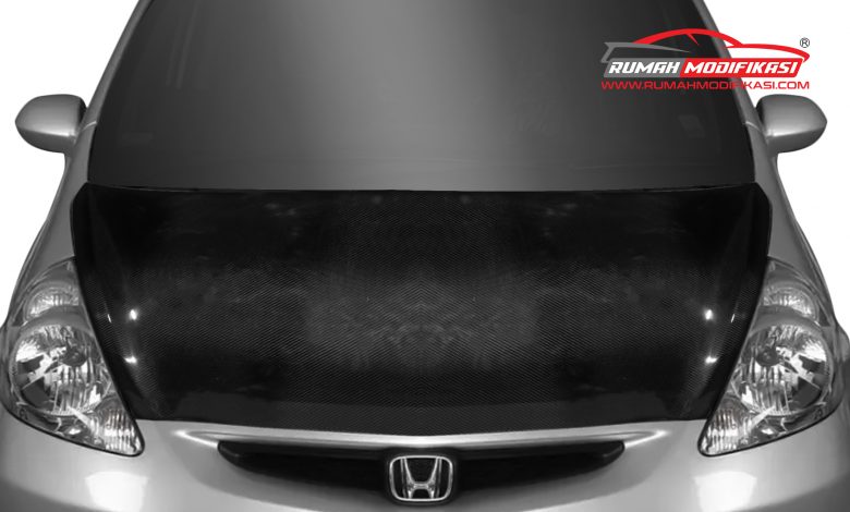 Kap mesin merupakan bagian yang cukup besar di bagian depan mobil. Dengan pemakaian kap mesin karbon, karakter mobil seketika berubah jadi sporty. Aplikasinya mudah, dan tak perlu banyak tambahan komponen lain. Honda Jazz merupakan salah satu primadona modifikasi, termasuk penggemar aliran racing.