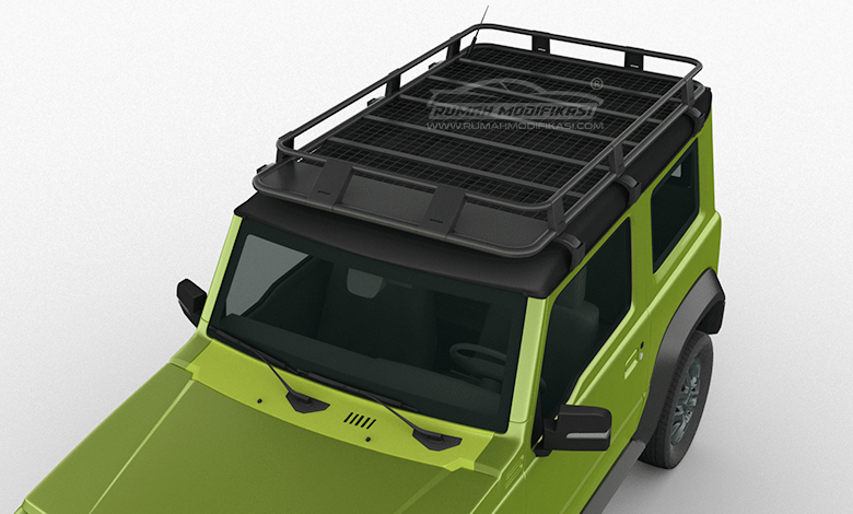 Roof rack merupakan salah satu aksesori utama untuk modifikasi jip. Tak hanya memperkuat karakter adventure, roof rack juga sangat fungsional. Terutama untuk jip kompak seperti Suzuki Jimny yang ruang kabinnya tak terlalu luas. Muatan yang memenuhi kabin dapat dialihkan ke atap dengan aman berkat adanya roof rack.