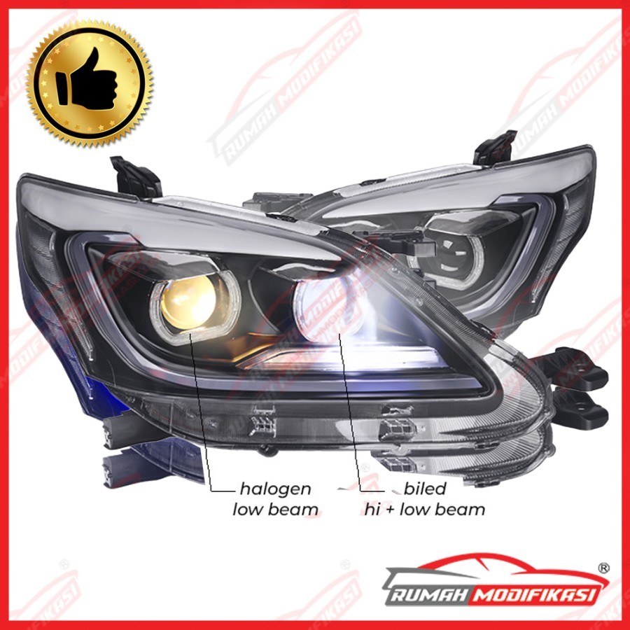 1. Sistem Ganti 2. Warna Black 3. Plug n Play 4. Fungsi : Lampu Senja, Driving Light, Projector 5. Fitur : Light Bar + Sequential Signal + 2 Biled Projector HL + RGB 6. Merk : Rumah Modifikasi 7. Garansi : 3 Bulan