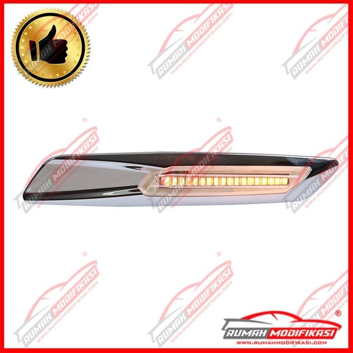 1. Sistem Ganti 2. Warna Black Smoke 3. Plug n Play 4. Fungsi : Side Lamp 5. Style : LED + Sequential Signal / Running Signal 6. Merk : RM 7. Garansi : 3 Bulan