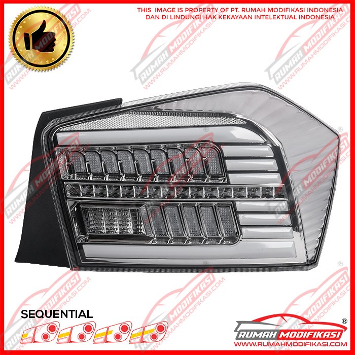 1. Sistem Ganti 2. Warna Chrome 3. Plug n Play 4. Fungsi : Lampu Senja, Lampu Rem, Lampu Mundur 5. Style : Light Bar + LED +Sequential + Ceremonial 6. Merk : Rumah Modifikasi 7. Garansi : 3 Bulan